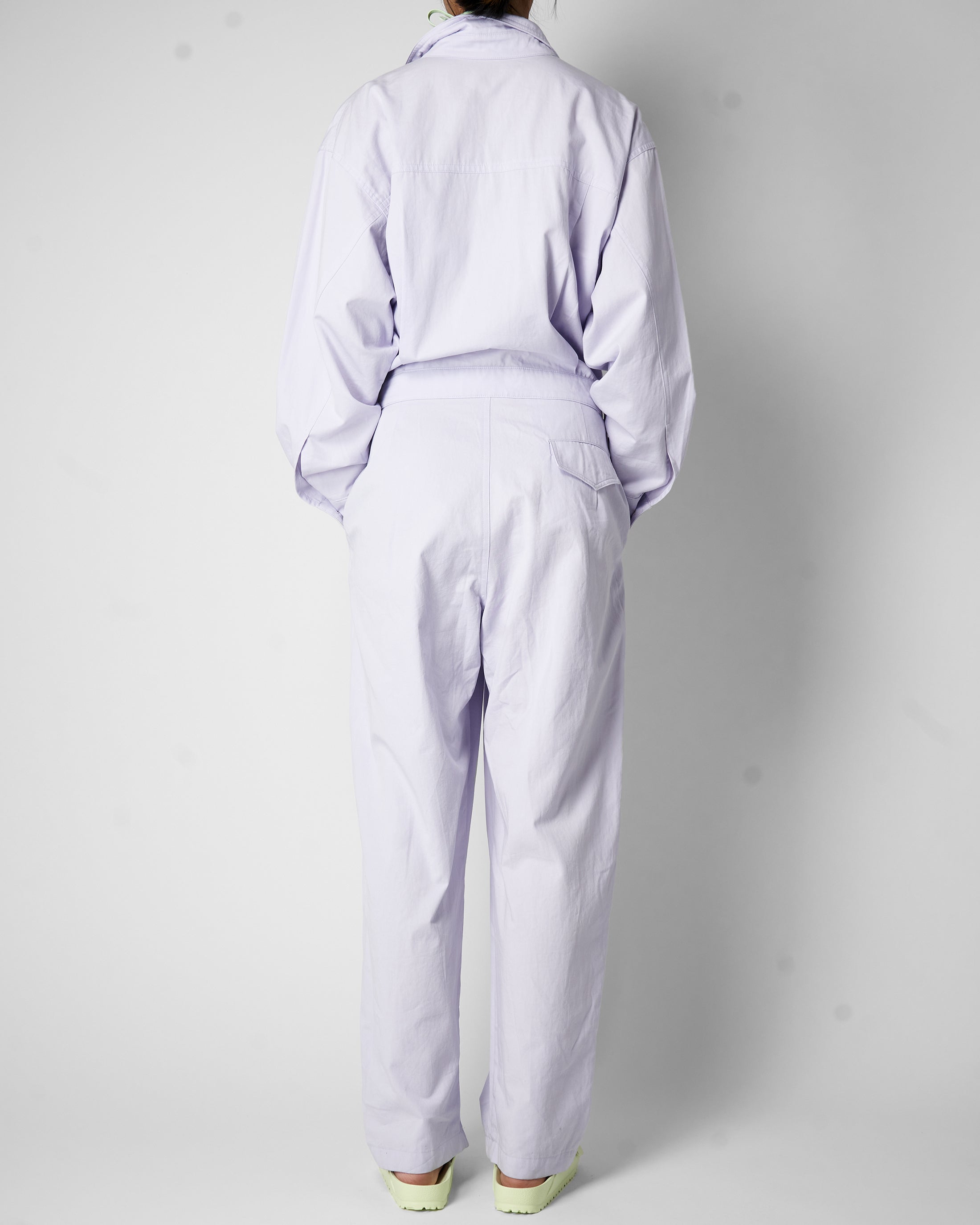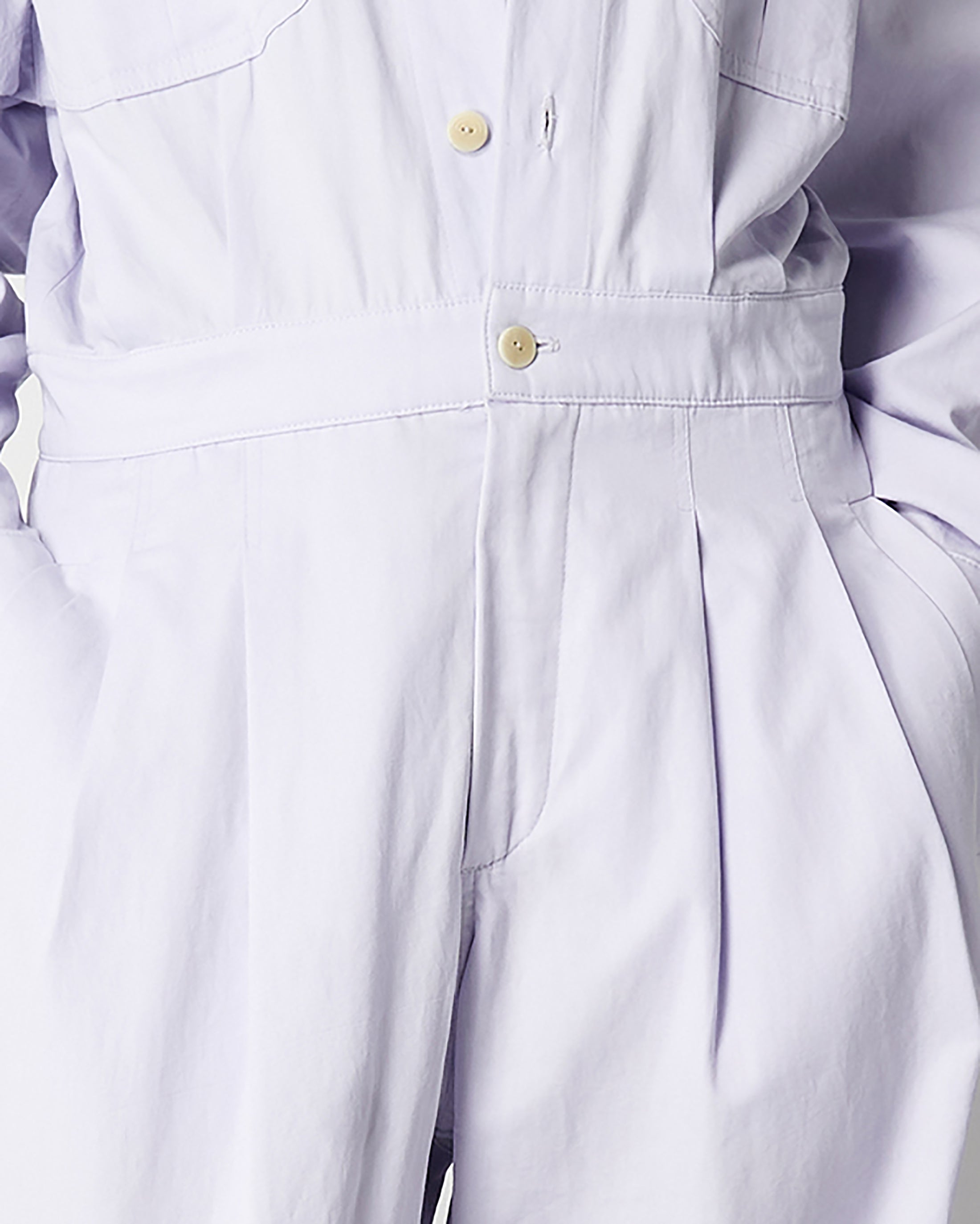 The Robin Jumpsuit is cut with a relaxed top and pleated wide leg. Button front with collar. Concealed zip closure. Chest pockets and side patch pockets. Buttoned cuffs.